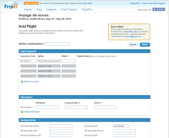 Il présente plusieurs originalités qui peuvent rendre grandement service aux voyageurs réguliers. Si vous êtes un adepte des réservations en ligne, vous pouvez indiquer à TripIt les données de vos confirmations de vols, d'hôtels, restaurants et autres pour que celui-ci élabore un itinéraire intelligent à partir de ces données. Sur une seule et unique page rassemblant l'ensemble des étapes de votre voyage, TripIt ajoute des infos utiles comme des plans ou des données météo.