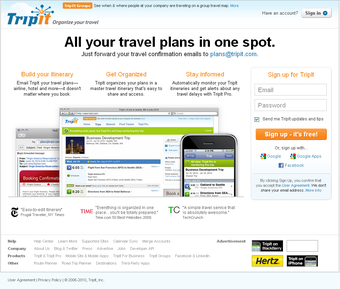 Les points négatifs de TripIt sont cependant assez rédhibitoires: le site ne comporte pas d'outil de recherche des vols, hôtels et autres, l'utilisateur n'a pas vraiment la main sur l'élaboration de son itinéraire et il est obligatoire de créer un compte pour utiliser le service, même dans sa partie gratuite (il faut de plus valider l'inscription en retournant sur sa boîte mail).